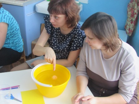 В процессе экспериментирования дошкольник получает возможность удовлетворить присущую ему любознательность, почувствовать себя учёным, исследователем, первооткрывателем. Поэтому в нашей группе мы провели мастер-класс для родителей на тему "Детское экспериментирование". Наши родители топили мандарины, делали подводную лодку из изюма и др. Родители смогут показать эти эксперименты дома своим деткам.