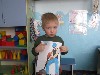 На занятии мы вспомнили названия предметов гигиены, последовательность купания малыша и способ приготовления тёплой воды из предлагаемых горячей и холодной.